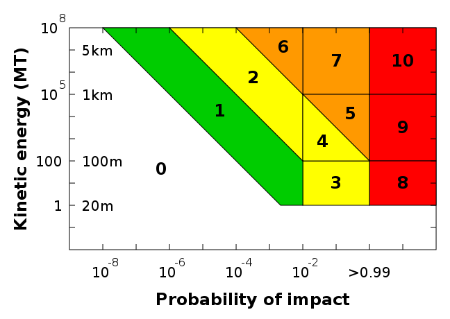 There is something called the Torino scale which rates the probability of an object’s impact and the destruction it might cause: